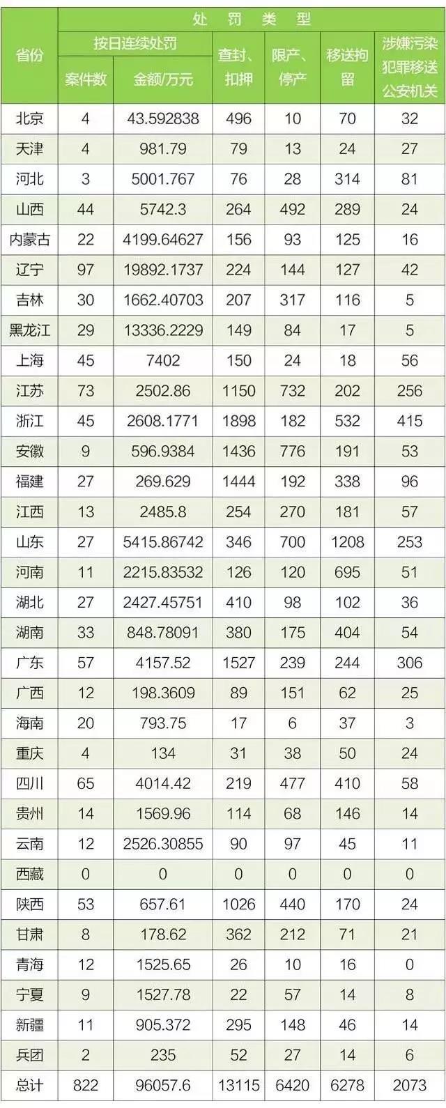 環(huán)保部公布:各省2017年1-9月環(huán)保法處罰明細(xì)
