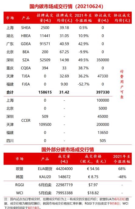 6月24日國(guó)內(nèi)碳市場(chǎng)交易行情:2021年至今漲幅最高到達(dá)49.5%。