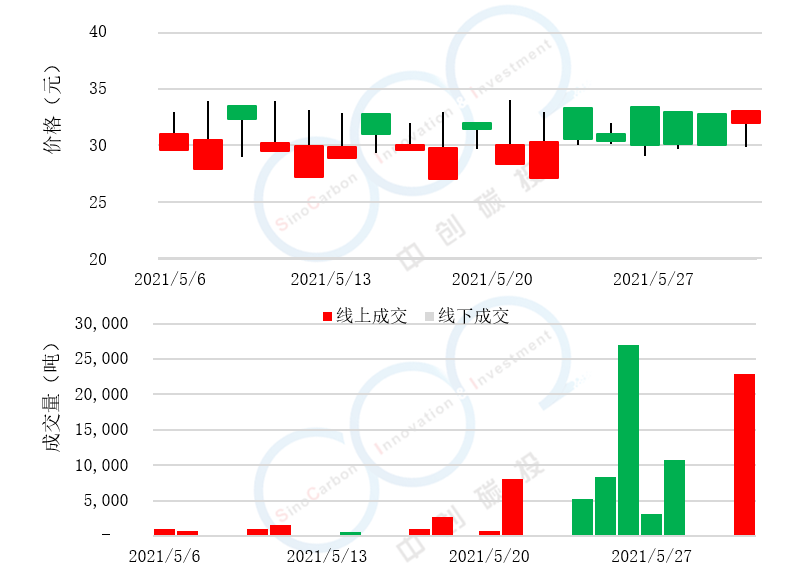 - 線上成交價最低為27.00元,最高為29.80元,平均碳價為29.00元。