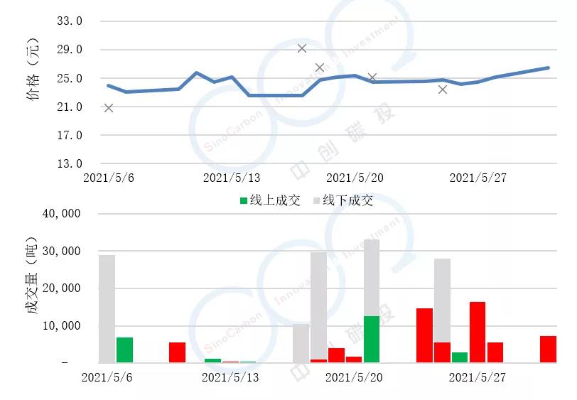 - 線下成交價最低為20.80元,最高為29.15元,平均碳價為24.99元。
