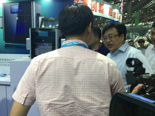 ▲北京市經(jīng)信委中小企業(yè)管理處處長(zhǎng)李巍先生視察中科宇杰展位