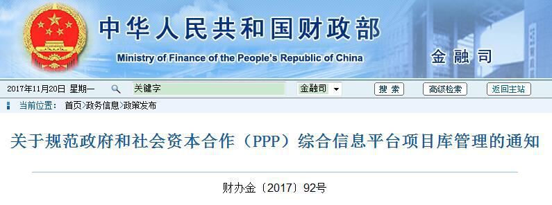 投資額達(dá)17.8萬億元的PPP項(xiàng)目庫管理進(jìn)一步從嚴(yán)規(guī)范。11月16日,財(cái)政 部公布《關(guān)于規(guī)范政府和社會資本合作(PPP)綜合信息平臺項(xiàng)目庫管理的通知》(以下簡稱《通知》)。
